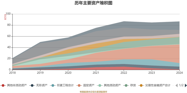 资产重大变化方面,截至2024年末,公司固定资产较上年末增加38.84%,占公司总资产比重上升10.17个百分点;在建工程合计较上年末减少42.19%,占公司总资产比重下降5.69个百分点;货币资金较上年末减少38.46%,占公司总资产比重下降5.49个百分点;长期股权投资较上年末增加114.64%,占公司总资产比重上升2.52个百分点。