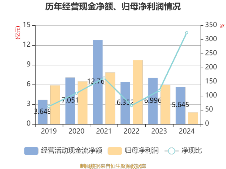 截至2024年,公司经营活动现金流净额为5.65亿元,同比下降19.32%;筹资活动现金流净额-3.11亿元,同比增加2.17亿元;投资活动现金流净额-4.61亿元,上年同期为-6.13亿元。
